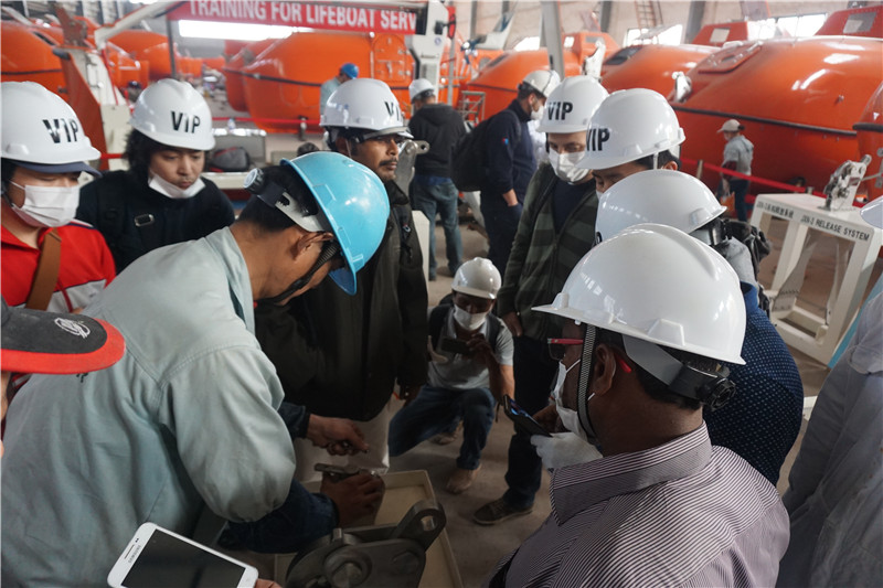 船舶服务精英人员来到米兰在线,对厂家设备的新设计,新产品进行深层次的学习和服务训练,成为佼燕救生设备的优秀服务商,为佼燕的客户提供更优质,更专业,更及时的服务.